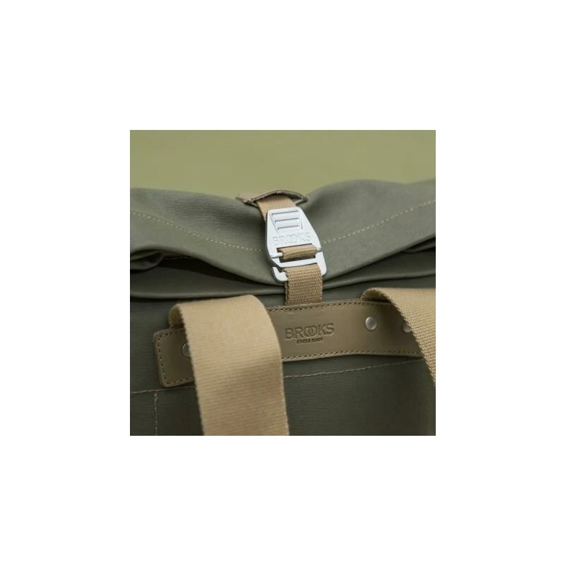 Mit dem Pickwick 26 L von Brooks erhälst du einen modischen Roll-Top Rucksack von bester Qualität. Das beschichtete Baumwoll-Material garantiert schicken urbanen Look und gleichzeitig hohe Robustheit. Somit kann beispielsweise ein Laptop sorglos mittransportiert werden. Gepolsterter Rücken und verstellbare Tragegurte für bequemen Sitz sind Qualitätsmerkmale des Pickwicks, die nicht nur Fahrradfans begeistern: Der Pickwick ist ein erstklassiger Rucksack für Jedermann. Sollte man einmal etwas mehr oder sperrigeres Gepäck dabei haben, lässt sich das Volumen von 26 Litern komfortabel erweitern, indem man den Überschlag und die seitlichen Druckknöpfe öffnet.