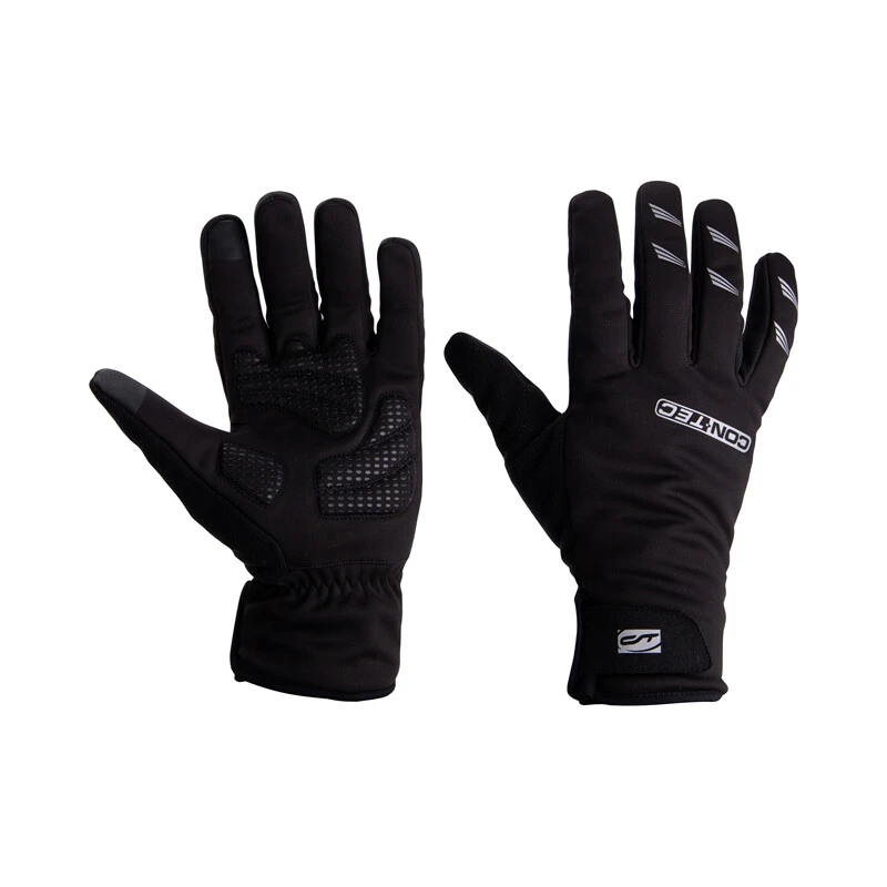 Winterhandschuh „Frigid TR“ hergestellt aus wasserfester Hipora Membran, leitfähige Beschichtung an Daumen und Zeigefinger zur Bedienung von Touchscreens, mit Silikondruck für besonders guten Grip auch bei Nässe, mit Reflexaufdruck auf der Oberhand zur besseren Sichtbarkeit auch bei Dunkelheit, inkl. individueller Grössenverstellung durch Klettverschluss, mit ergonomischer Innenhandpolsterung zur Dämpfung von Erschütterungen und Schonung der Gelenke, Frotteedaumen zum Schweiss abwischen, waschbar bis 30°C.
