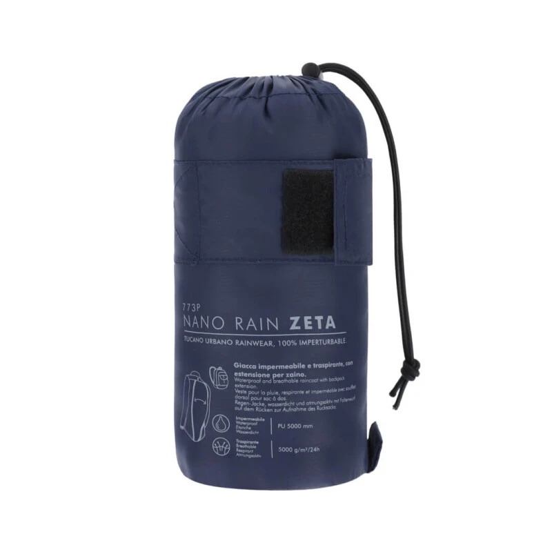 Regenjacke, sehr gut zusammenfaltbar, mit Falte auf dem Rücken zur Aufnahme des Rücksacks