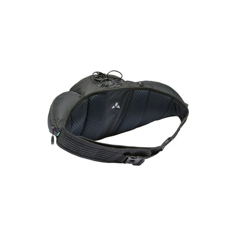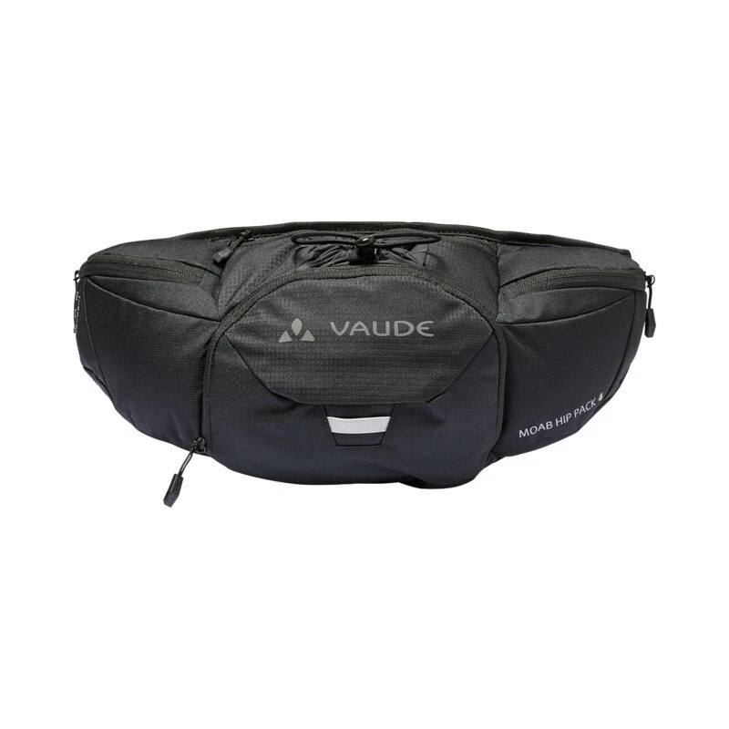 Der coole Moab Hip Pack wurde speziell für Biker entwickelt, die auf der sportlichen Feierabendtour nur das Nötigste dabeihaben wollen. Egal, ob Gravel, Enduro oder Crosscountry: Auf dieses ultimative Accessoire will man nicht mehr verzichten. Die sportlich geschwungene Hüftgurttasche passt sich durch den elastischen Hüftgurt jeder Figur und jeder Fahrlage an. Komfortable Polsterflächen vermeiden Druckpunkte im Rückenbereich. Für eine optimale Gewichtsverteilung wurde der Trinkflaschenhalter mit Staubalg mittig platziert, 2 mit Reissverschluss verschlossene Seitentaschen schmiegen sich perfekt um den Hüfbereich. Herzstück der Tasche bildet das mittlere Frontfach mit seiner ausgeklügelten Aufteilung. Im Frontflap befindet sich ein Mesh-Reissverschlussfach, 2 Steckfächer organisieren das Werkzeug und ein extra für den Ersatzschlauch vorgesehenes Fach sorgt für Ordnung. Zwischen dem gepolsterten Rücken und dem Trinkflaschenfach wurde eine Reissverschluss-Tasche für Wertsachen integriert. Wird die Trinkflaschenhalterung nicht benötigt, findet in ihr auch ein Ersatztrikot oder eine Windjacke Platz. Eine Regenhülle für Schutz vor Schauern und Schmutz sowie ein reflektierender Webbingloop und das reflektierende VAUDE Logo runden dieses Komfortpaket mit 4 l Volumen ab. Alle verwendeten, bluesign®-zertifizierten Materialien bestehen aus recyceltem Polyester.